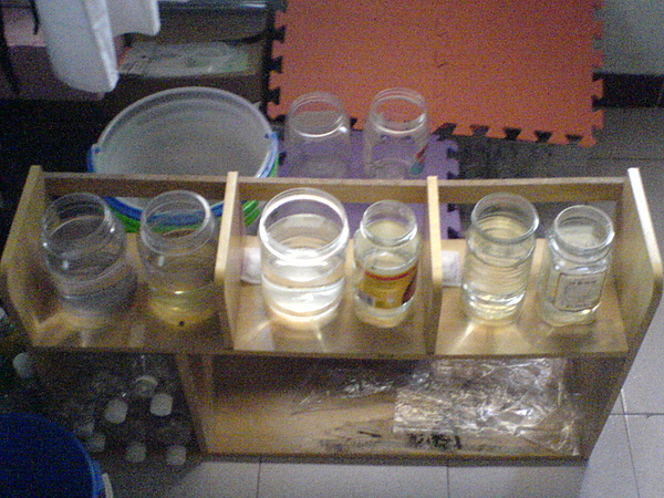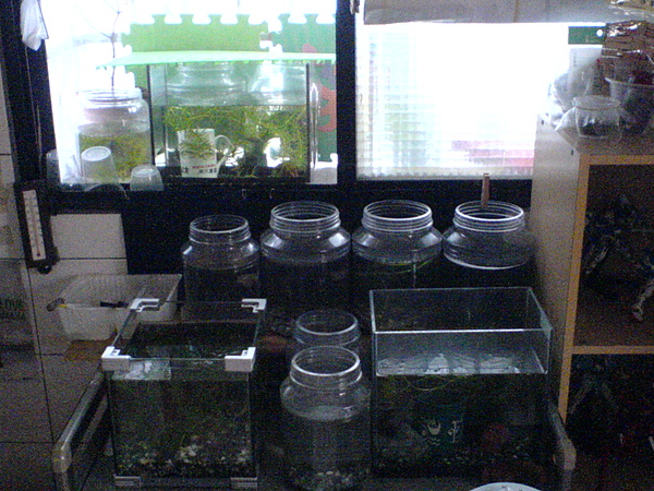 目前養魚的環境...總共有32條,應該還會再增加吧只是不知道該放哪裡囉~下一步應該會去增加架子了吧......
